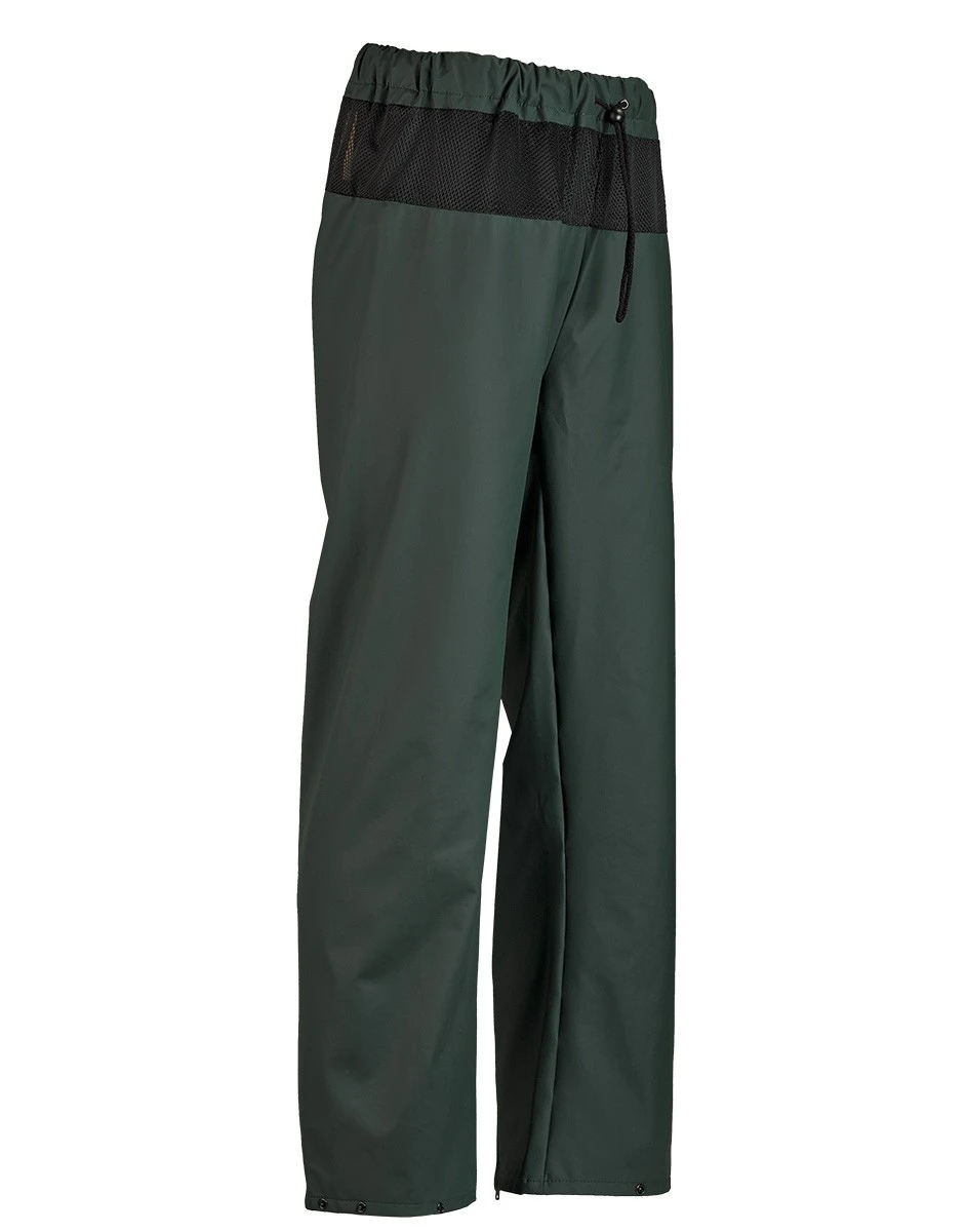Kiristysnauhalla varustetut Flexorain sadehousut tarjoavat erinomaisen suojan sadekelillä. Materiaali on tuulen- ja vedenpitävä, pehmeä ja joustava. Lahkeensuissa vetoketju, vyötäröllä resori ja verkkokangaskuja. Säädettävät lahkeensuut.