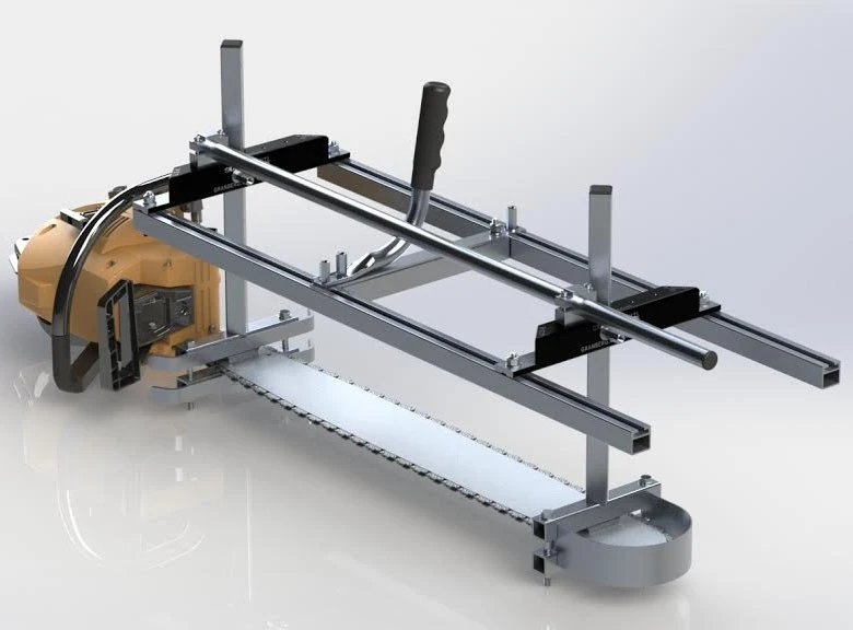 Alaskan Mill MK-IV on uudistettu versio MK-III:sta. Moottorisahalaitoksella voit sahata rungon lankuiksi tai hirsiksi melkein missä tahansa. Näin ollen painavaa runkoa ei tarvitse siirtään mihinkään. Sahauksen jälkeen lankut on helppo siirtää varastopaikalta seuraavaan paikkaan.