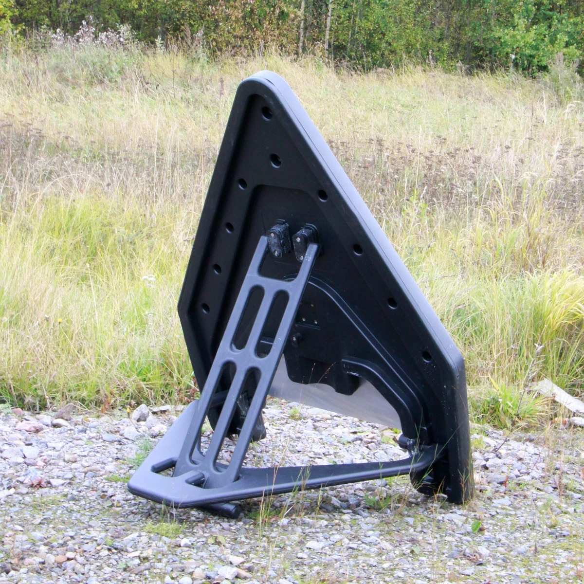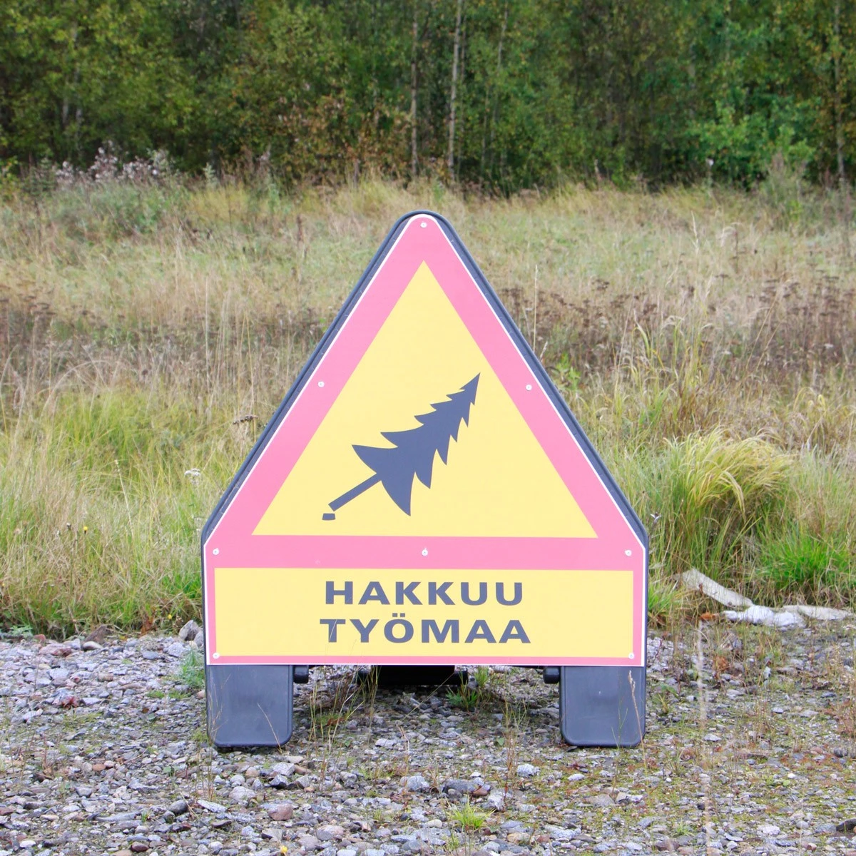 Hakkuutyömaa varoitusmerkki tukevalla kovamuovisella, kokoontaitettavalla kolmijalalla. Toimitukseen sisältyy kolmiojalka, varoitusmerkin taustalevy, varoitusmerkkitarra ja ruuvit. Toimitetaan koottuna käyttövalmiiksi.