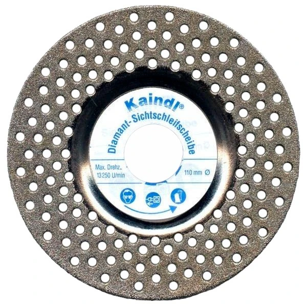 Kaindl timanttilaikka kulmahiomakoneeseen. Reiällinen timanttilaikka on loistava työkalu puuntyöstölaitteiden terien teroitukseen. Reikien ansiosta näet teroitettavan kohteen laikan läpi, jolloin teroituskulman säätäminen on helpompaa. Reiät vähentävät myös oleellisesti kitkaa.