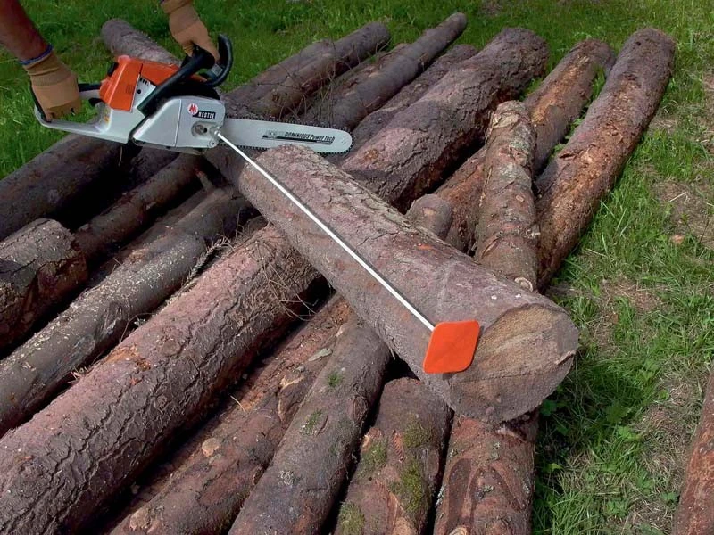 Helposti ja nopeasti käytettävä pituusmitta puun katkaisuun. Pikaliitin kiinnitetään moottorisahan etummaiseen pulttiin.