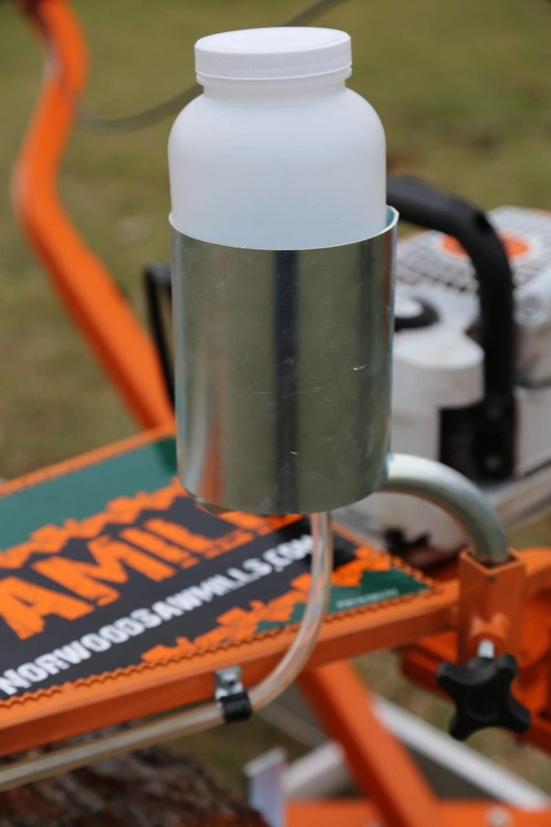 Vaakatasossa sahattaessa sahan oma ketjunvoitelu ei usein riitä voitelemaan laippaa kärkipyörälle saakka. PM14 ketjusahalaitokseen lisävarusteena saatava voitelujärjestelmä pitää huolen, että kärkipyörä saa myös riittävästi voitelua. Tämä lisää laipan ja ketjun käyttöikää huomattavasti.