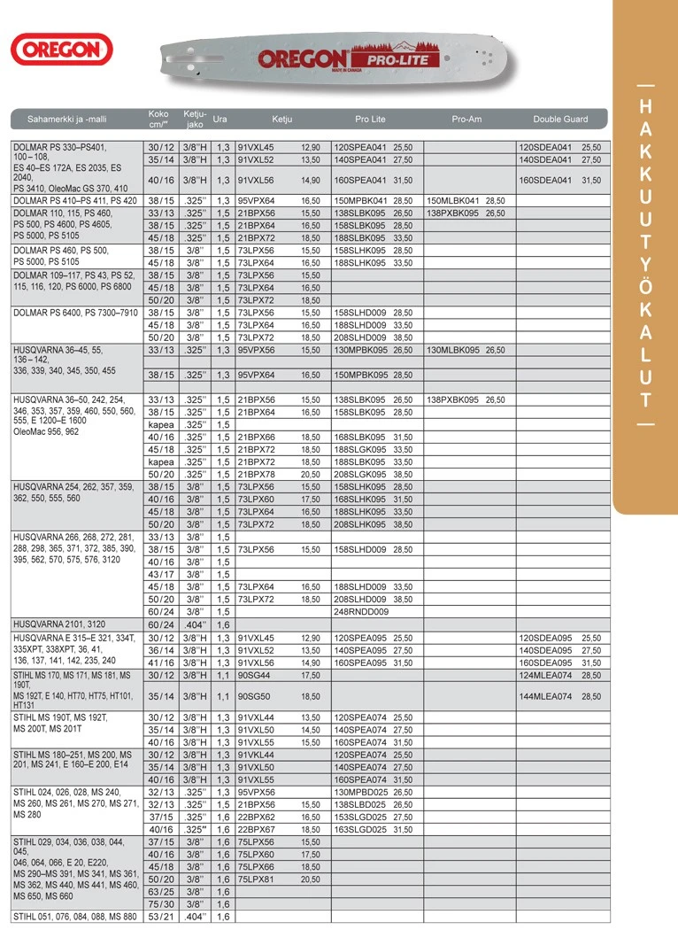 Valitse ketjulle sopivan mittainen laippa.