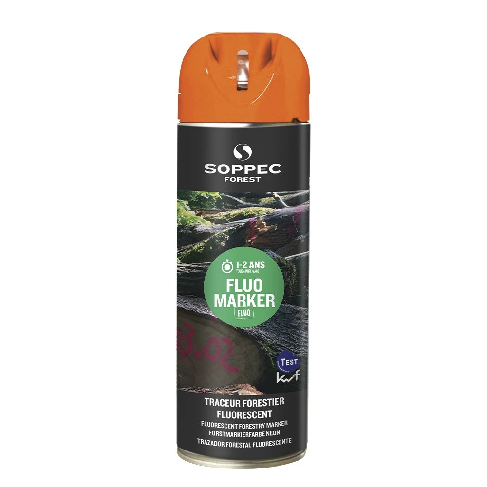 Soppec Fluo Marker fluoresoivat merkintäsprayt on kehitetty erityisesti puun ja puutavaran merkintään. Värin kesto noin 6-12 kk olosuhteista riippuen. Toimii -18° C asti. Imeytyy hyvin myös kosteisiin pintoihin.