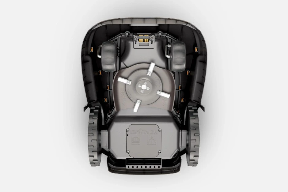 | Terän tyyppi – 4 pyörivää terää | Paluu latausasemaan – Automaattisesti lyhintä tietä | Sadetunnistimet – Kyllä | Maksimi kallistuskulma – 45% |