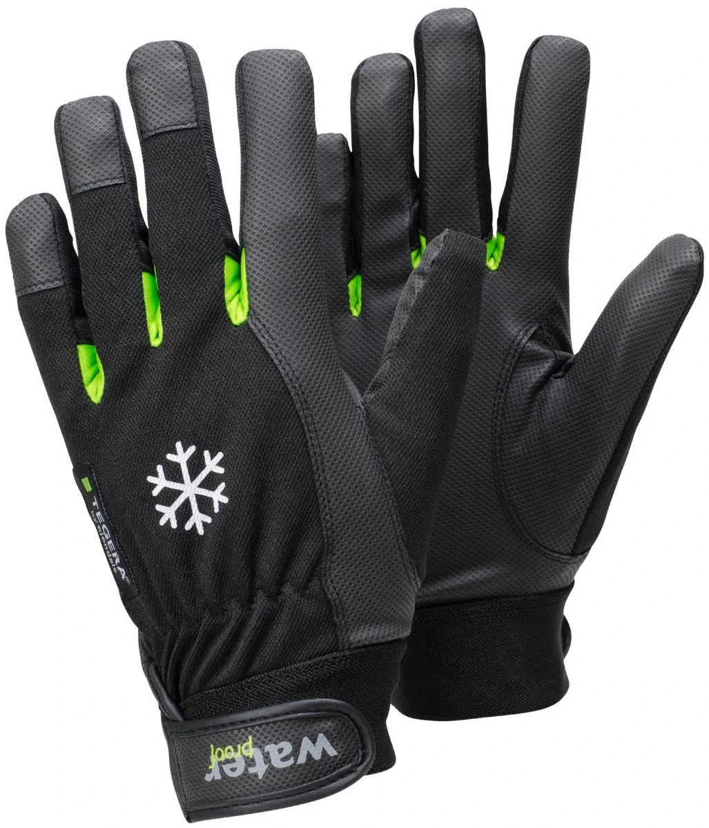 Tuulen- ja vedenpitävät työsormikkaat fleece vuorella. Hyvä istuvuus ja pitävä ote. Vahvikkeet sormenpäissä. Tarraranneke. Kämmenpuoli keinonahkaa. Kämmenselkä polyesteriä. Koot: 8-11.