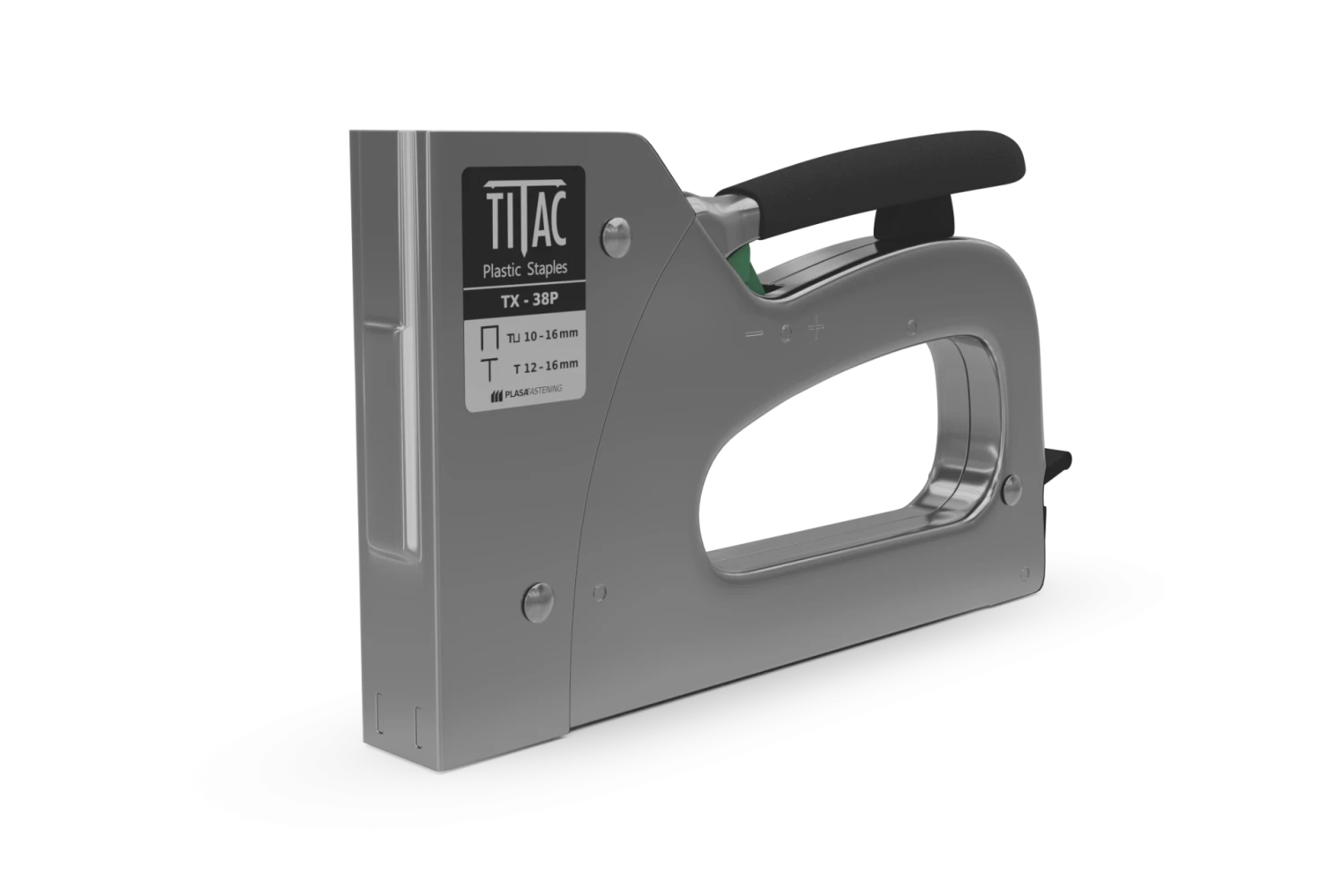 Titac TX-38P on ammattilaisen laadukas ja kestävä sinkiläpistooli TITAC -makasiinilla. Sinkiläpistooliin käyvät TU-komposiitti sinkilät ja T-naulat. TX-38P sinkiläpistooliin käyvät TU-sinkilät 7-13 mm ja T-naulat 9-12 mm seuraavilla kovuuksilla: pehmeä, kova ja erittäin kova.
