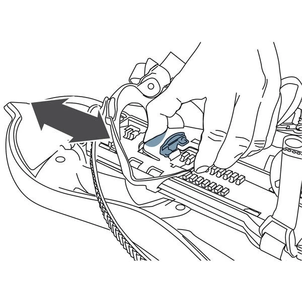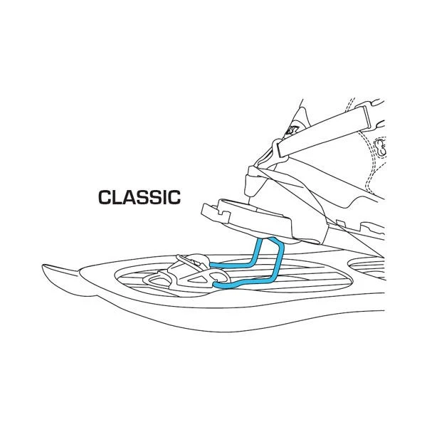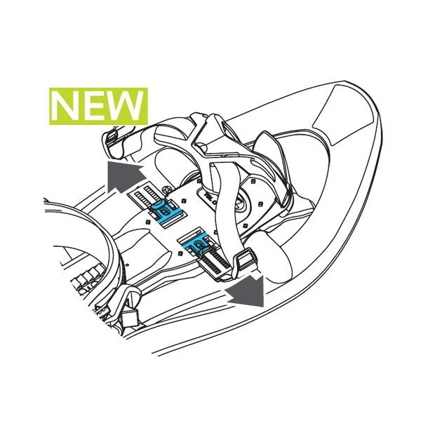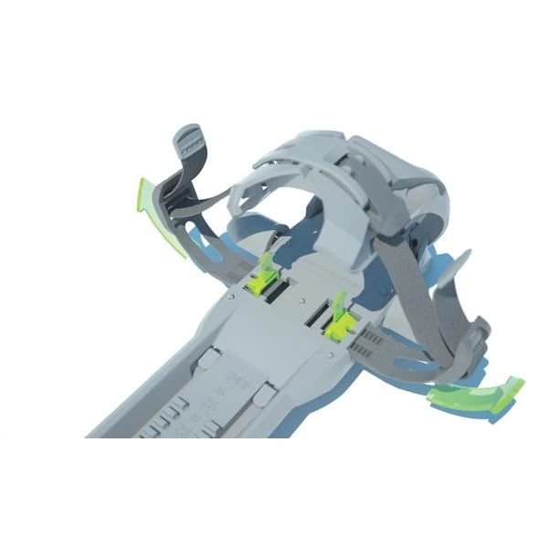 Joustava kansi, iskunvaimennus ja sauvalla käännettävä kantapääkorotus mäkiosuuksia varten. Etusiteen leveys säädettävissä kengän leveyden mukaan.