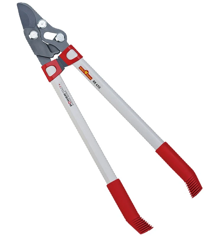 Wolf Garten RR650 raivaussakset, ohileikkaava malli. Pituus 650 mm. Voimanvälitys 2-kertaisella leikkuuteholla. Max. oksan läpimitta 40 mm.